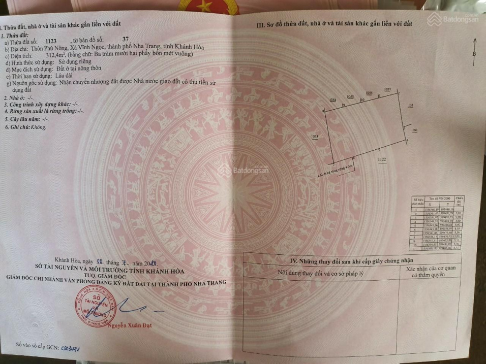 Thông tin khác: Bán lô đất rộng 312,4m2 full thổ cư - Ngang 21m - Đường rộng 4m - Nằm Gần KĐT Vĩnh Điềm Trung