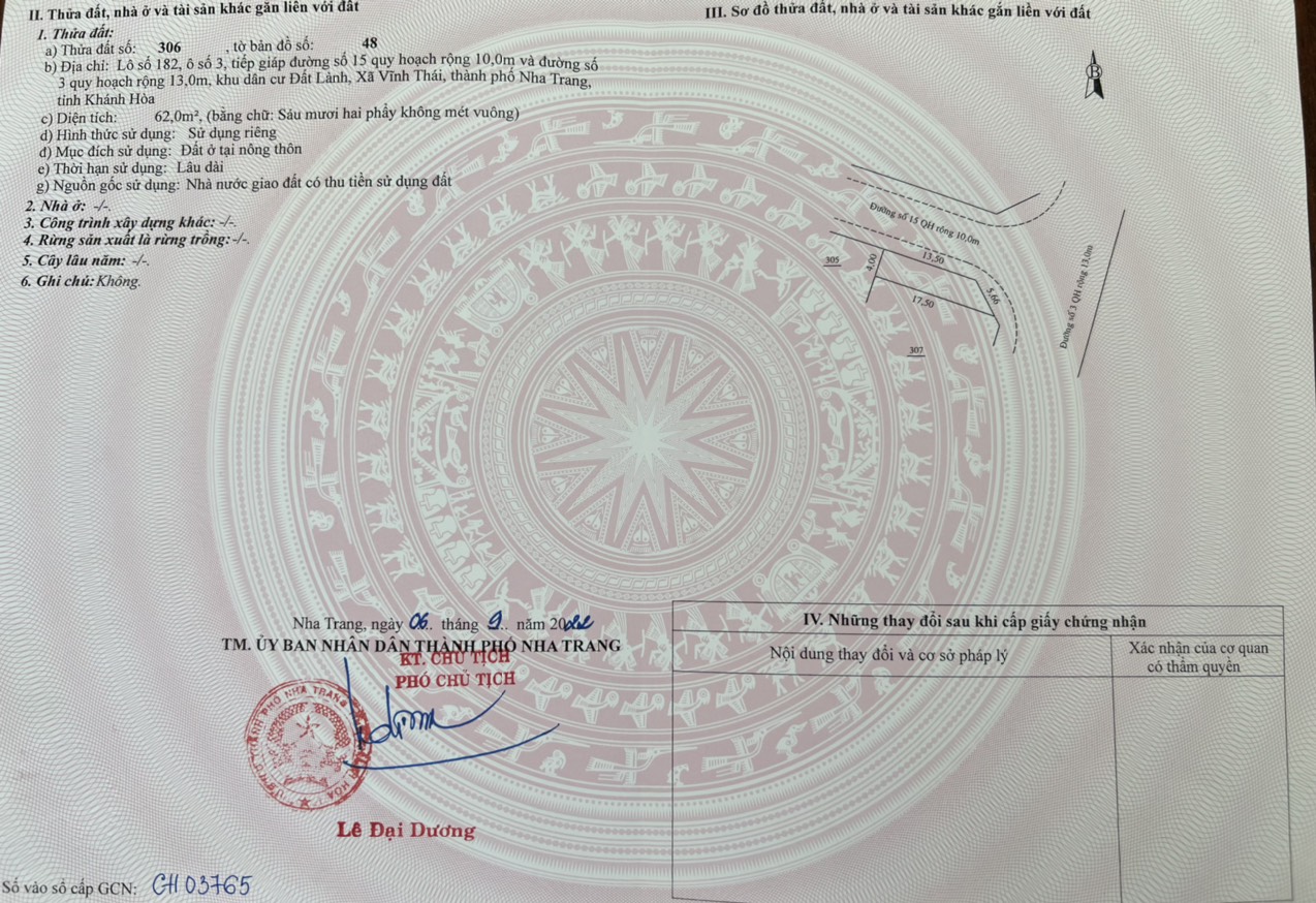 Thông tin khác: BÁN LÔ GÓC 2 MẶT TIỀN TĐC ĐẤT LÀNH VĨNH THÁI NHA TRANG. Dt: 62m2. Giá: 2 tỷ 280 triệu