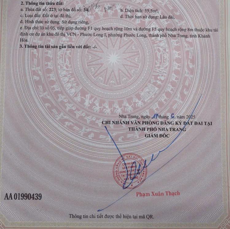 Thông tin khác: BÁN LÔ GÓC ĐẸP ĐƯỜNG F1&F5 THUỘC TĐC PHƯỚC LONG 1, NAM NHA TRANG.