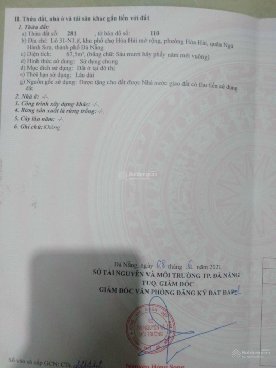 Thông tin khác: Bán lô Tây Sơn khu phố chợ Hòa Hải, đường 7,5m