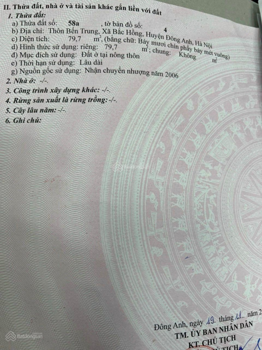 Thông tin khác: Bán mảnh đất đẹp ở thôn Bến Trung, xã Bắc Hồng, huyện Đông Anh, thành phố Hà Nội