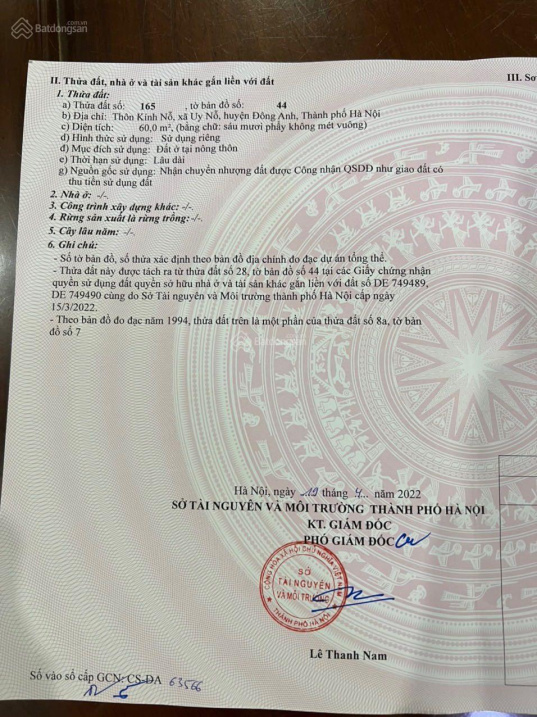 Thông tin khác: Bán mảnh đất đẹp ở thôn kính Nỗ, xã uy nỗ, huyện Đông anh, thành phố Hà Nội