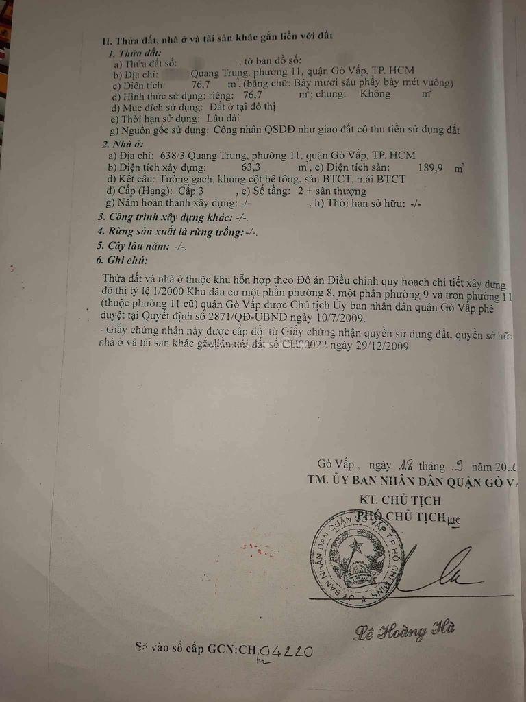 Thông tin khác: Bán Nhà 1T2L - 81 m2 4,5 x 18 HXT 1/ Quang Trung, gần chợ HTT, sát trước mặt 8,45 tỷ