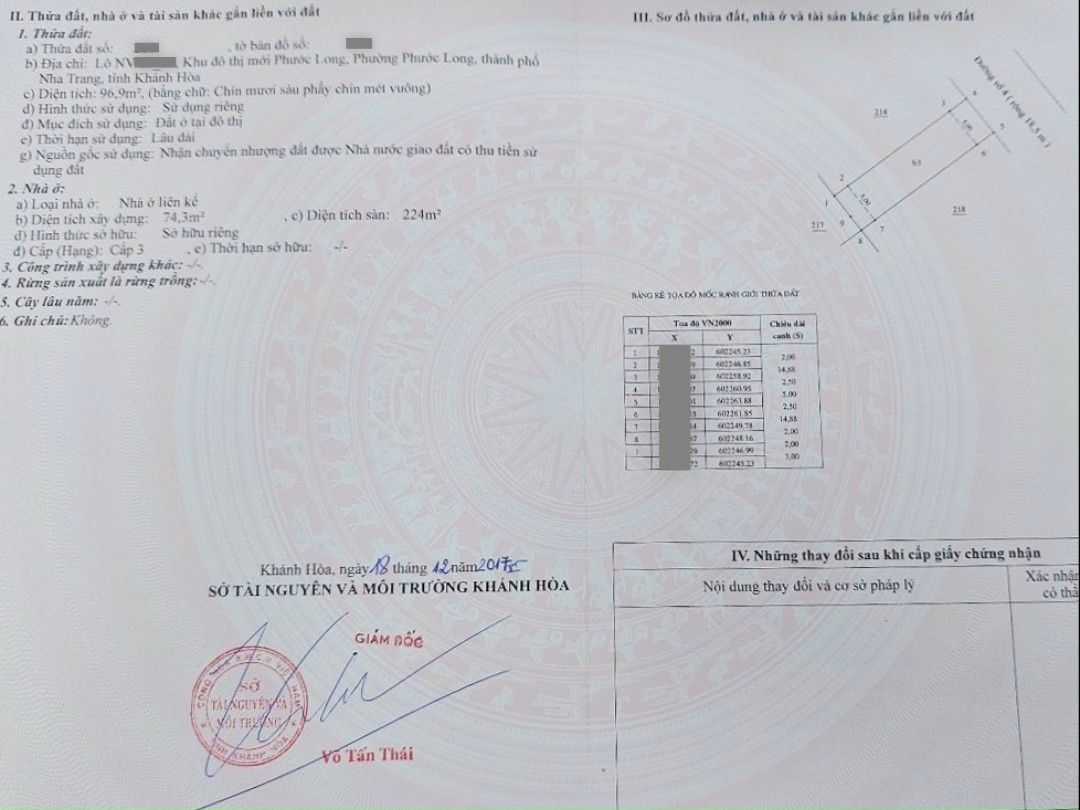 Diện tích đất: 96.9 m2 đất ở đô thị ngang 5m x dài 19m