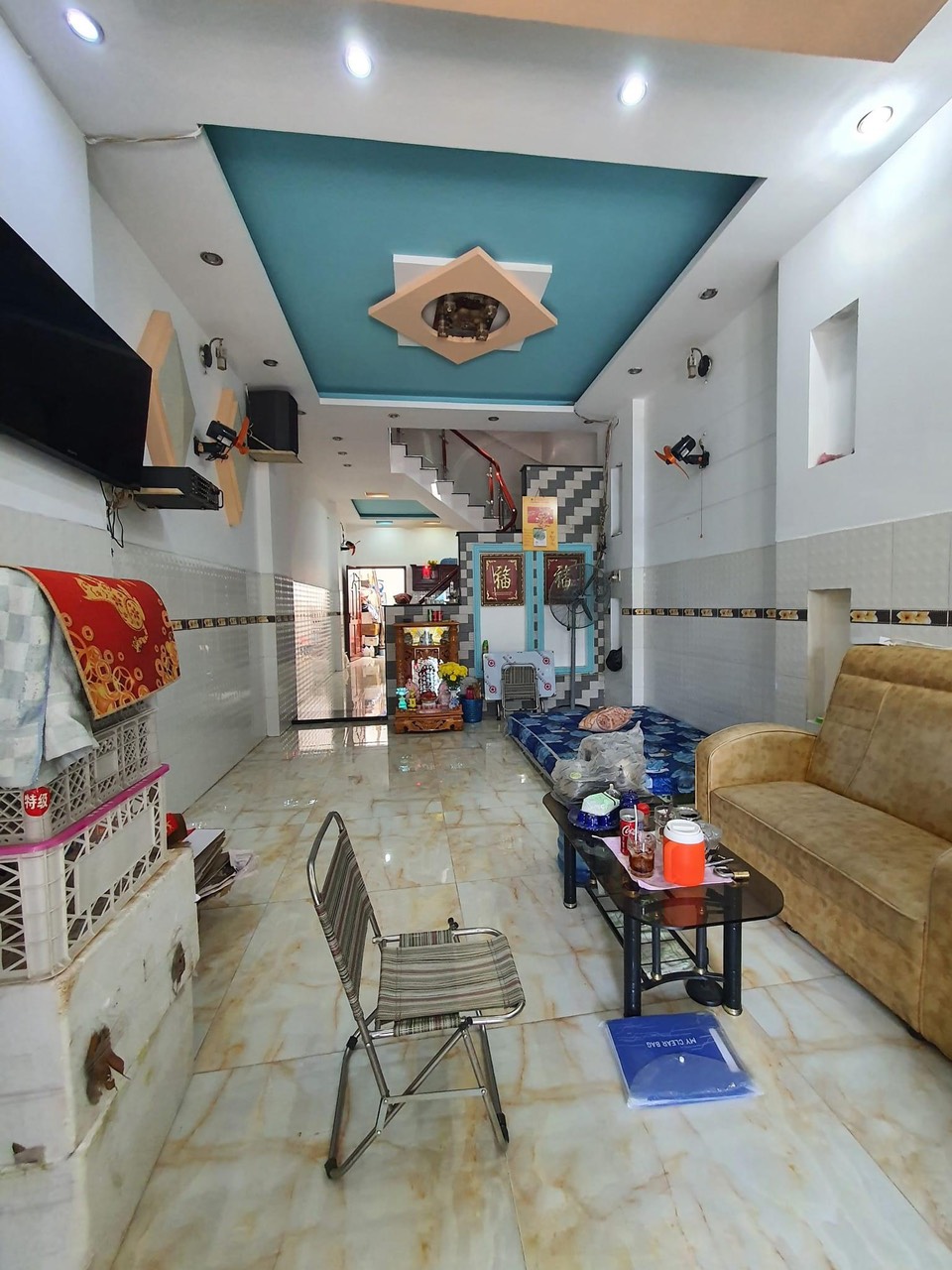 – Diện tích: 4 x 19m. Xây dựng 1 trệt 3 lầu, sân thượng trước, sau, có 2 giếng trời sáng thoáng, 4 phòng ngủ rộng thoáng, có thể thêm phòng, 6 vệ sinh, phòng thờ, phòng khách, bếp rộng thoáng, ban công thoáng mát.