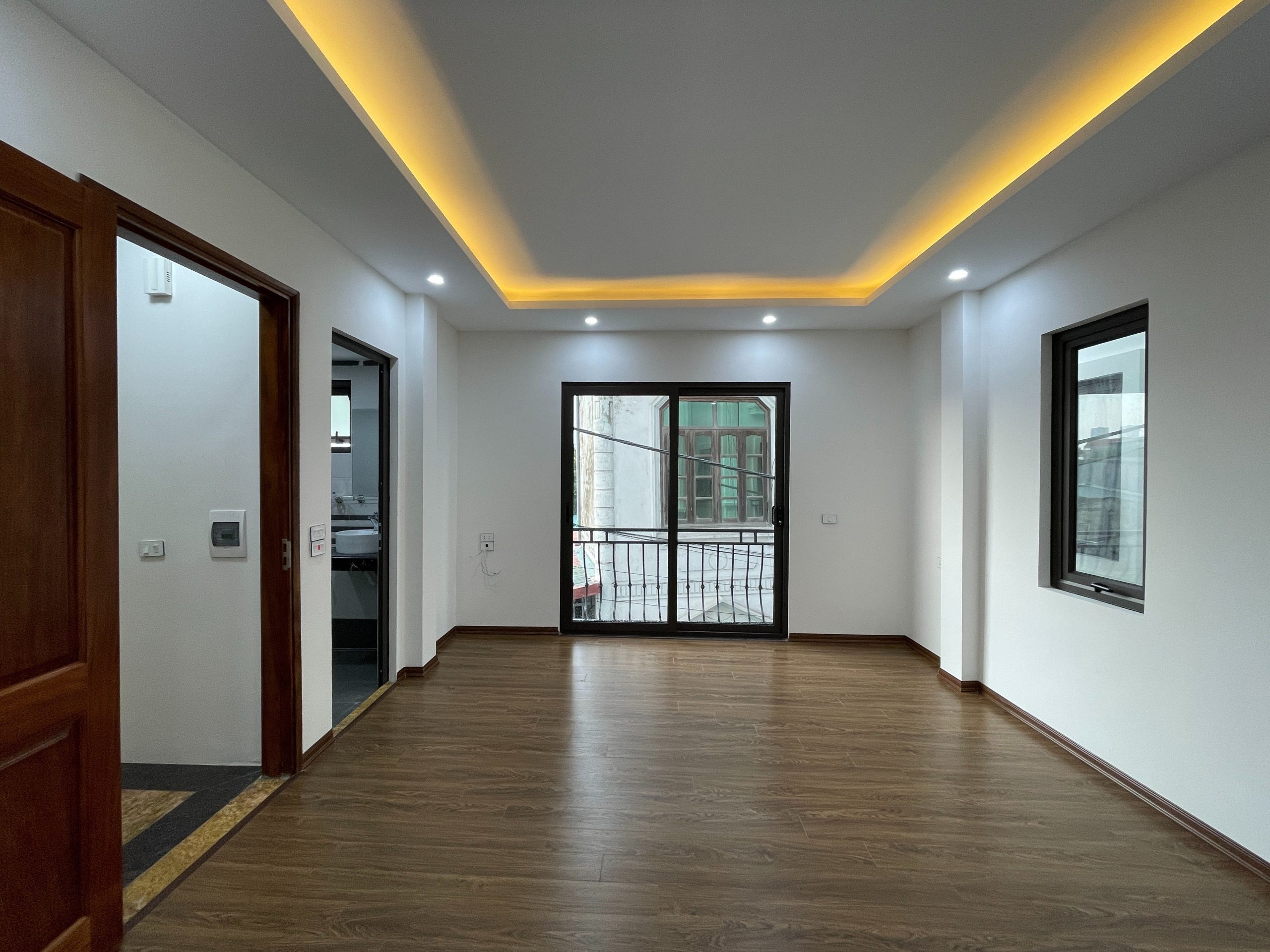 – Cửa ra vào 2 lớp: cửa ngoài song sắt+cửa trong gỗ lim ván kính cường lực
