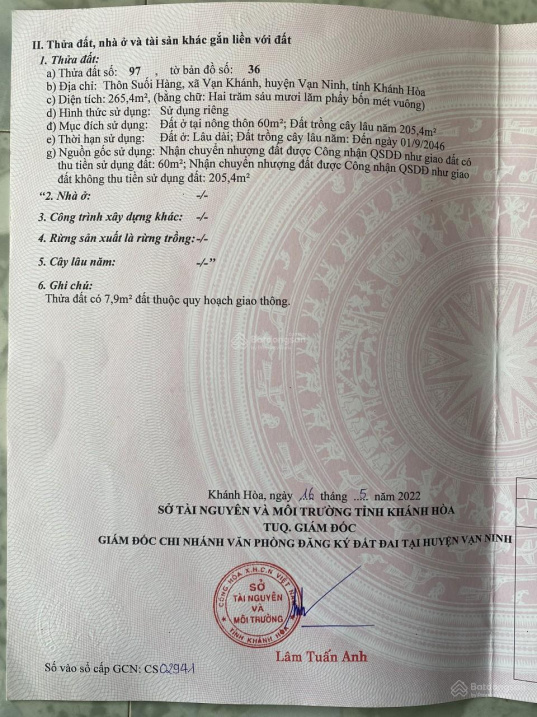 Thông tin khác: Bán nhà cấp 4 Suối Hàng, Vạn Khánh - CLN 197.5m2, giá 1 tỷ 600 triệu