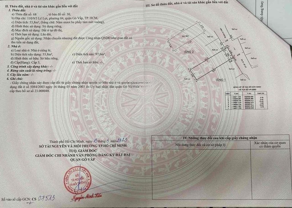 Thông tin khác: BÁN NHÀ CHÍNH CHỦ 118/13/3 Lê Lợi,p4, Quận Gò Vấp 53.8 m2 chỉ 100 triệu/m²