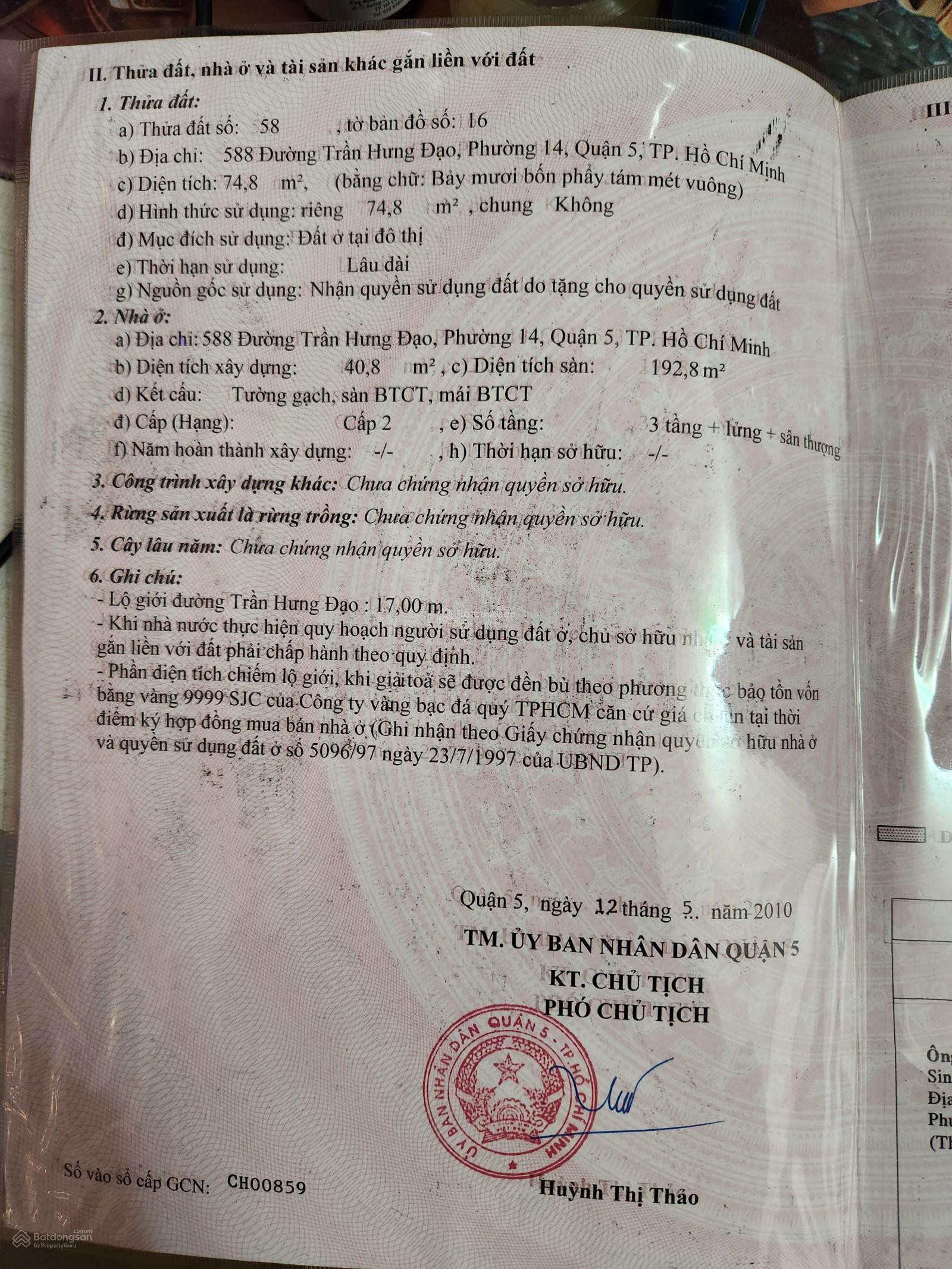 Thông tin khác: Bán nhà đường Trần Hưng Đạo, Đường Trần Hưng Đạo, Phường 14, Quận 5, Hồ Chí Minh