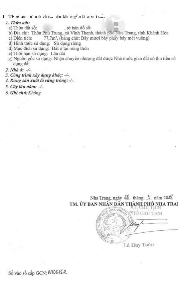 Địa chỉ: Xã Vĩnh Thạnh, Nha Trang, Khánh Hòa