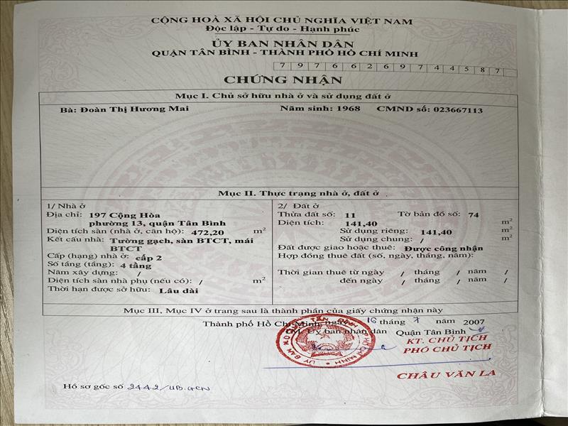 Thông tin khác: BÁN NHÀ NGUYÊN CĂN MẶT TIỀN ĐƯỜNG CỘNG HOÀ PHƯỜNG 13 QUẬN TÂN BÌNH