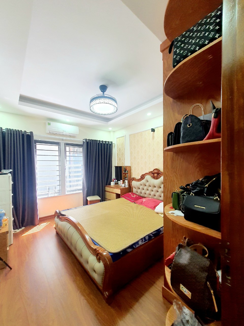 + Nhà 5 tầng chủ thiết kế cực đẹp cầu thang tay vịn gỗ cuối, cửa nhà gỗ lim, sàn ốp gỗ, mỗi tầng 2 phòng + vệ sinh.