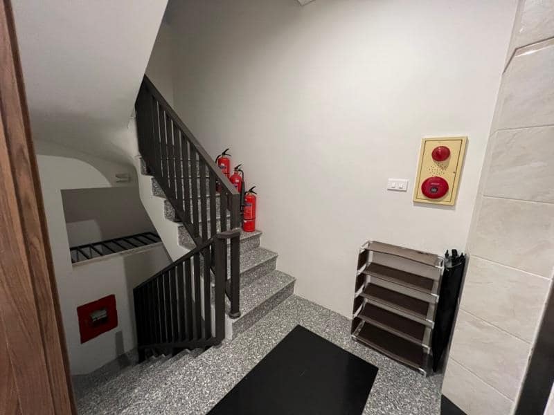 Tầng 1: lễ tân, thường trực, phòng kỹ thuật khu để xe, cầu thang máy, thang bộ, 1 phụ.
