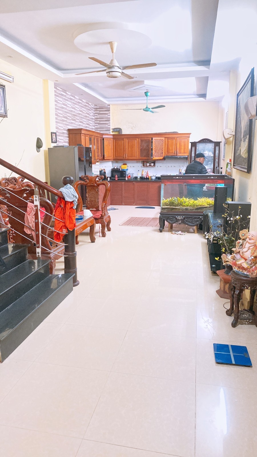 Tầng 1: phòng khách, bếp, wc.