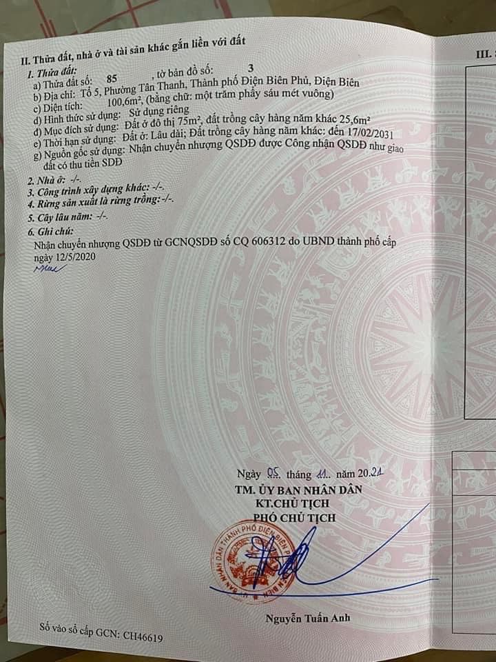 Bán thửa đất tổ 5 phường Tân Thanh, thành phố Điện Biên Phủ