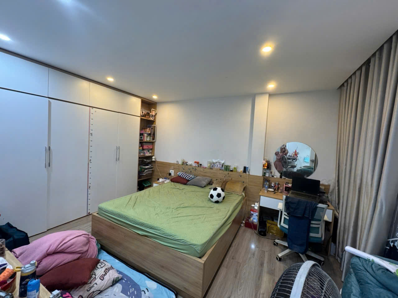 + Tầng 4: 01 phòng ngủ + 01 nhà vệ sinh khép kín + ban công sân vườn : hiện phòng này dag làm khu vui chơi cho trẻ con, để lại toàn bộ khu vui chơi cầu trượt nhà bóng, thiết bị nhà vệ sinh, bồn tắm kính, hệ thống đèn sưởi nhà tắm