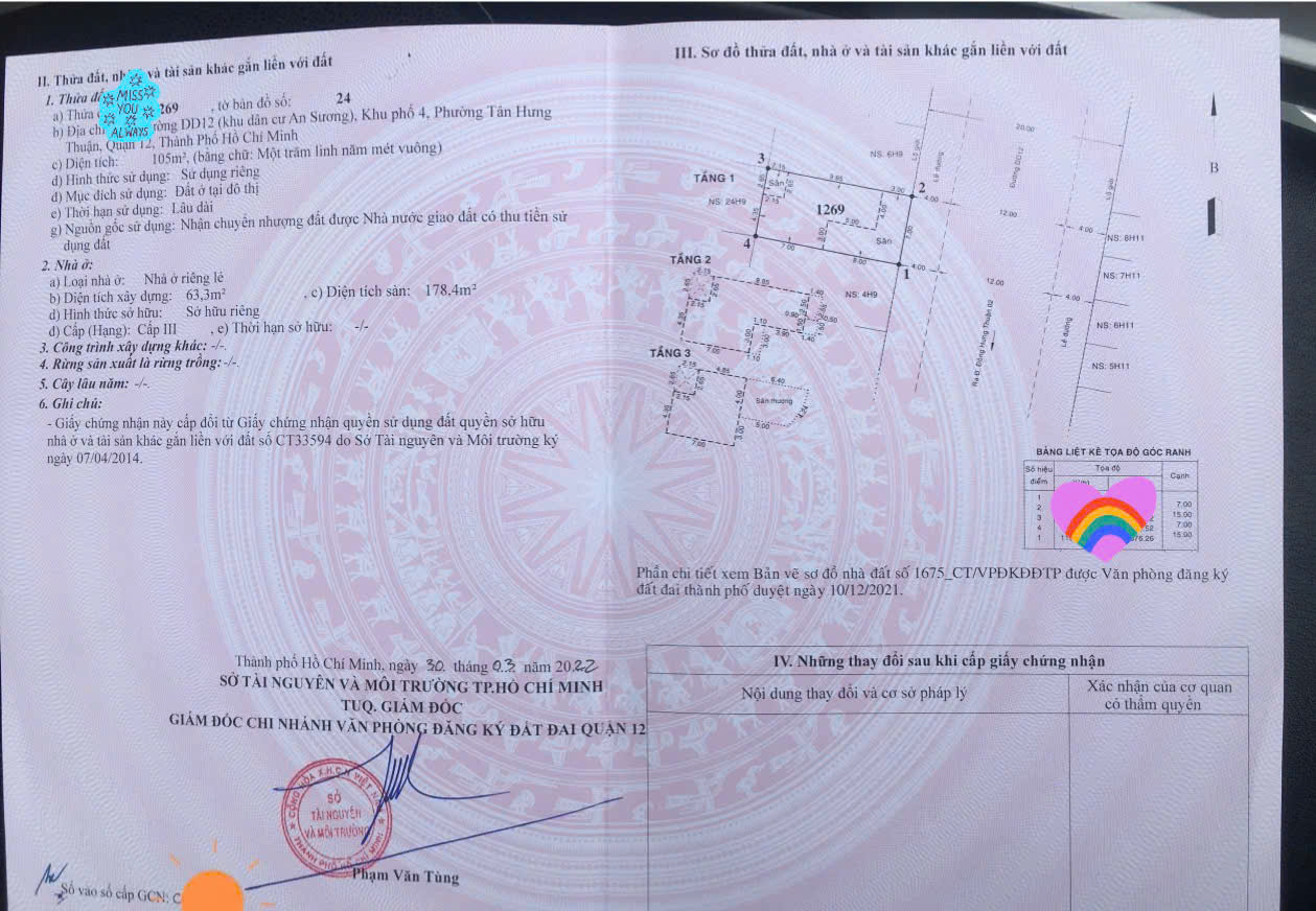 Diện tích: 7m x 15m = 105m² công nhận đủ. |