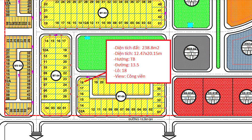 BT 05 – 18 HUD Mê Linh Central.Đất đấu giá 238.8m2, 14tỷ