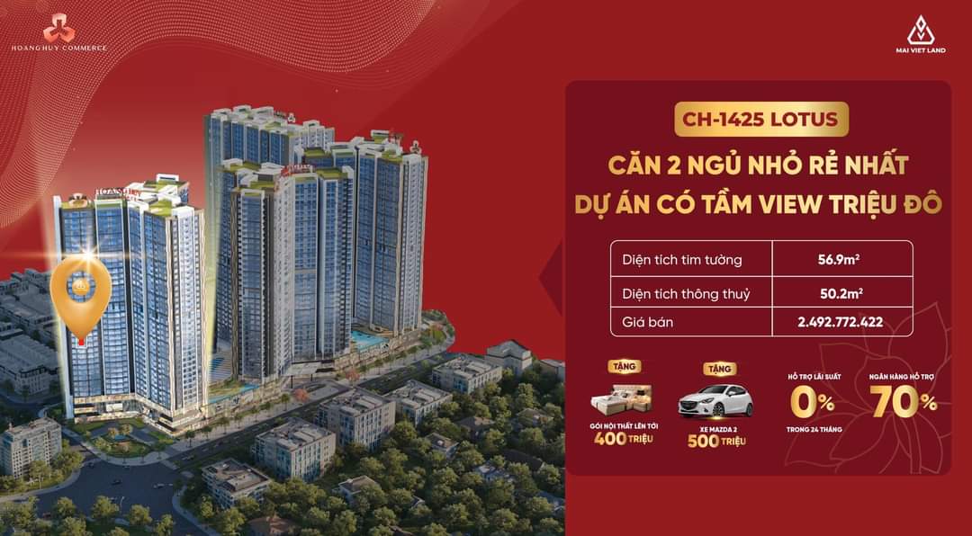 CĂN 2 NGỦ RẺ NHẤT TÒA LOTUS DỰ ÁN HOÀNG HUY COMMERCE .