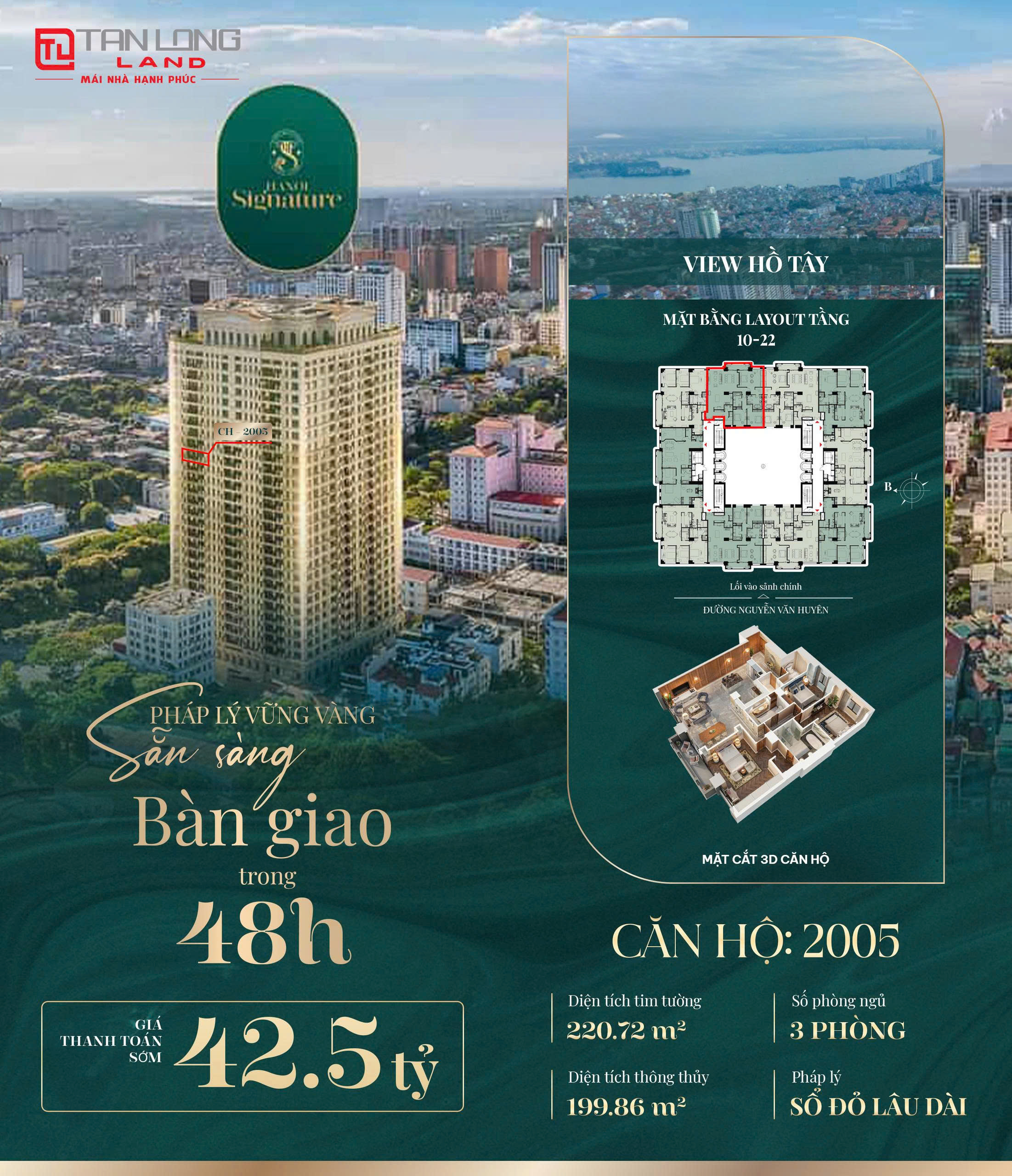 Căn 2005 Hanoi Signature – View Hồ Tây, Rộng Gần 200m², Thanh toán 42.5 Tỷ – Nhận Nhà Ngay 48h !