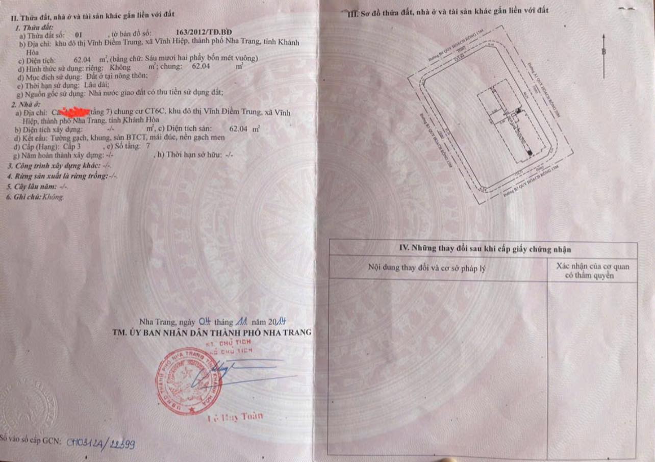 Thông tin khác: Cần bán chung cư CT6 Vĩnh Điềm Trung 62m2, 2pn. Giá 2ty150tr!