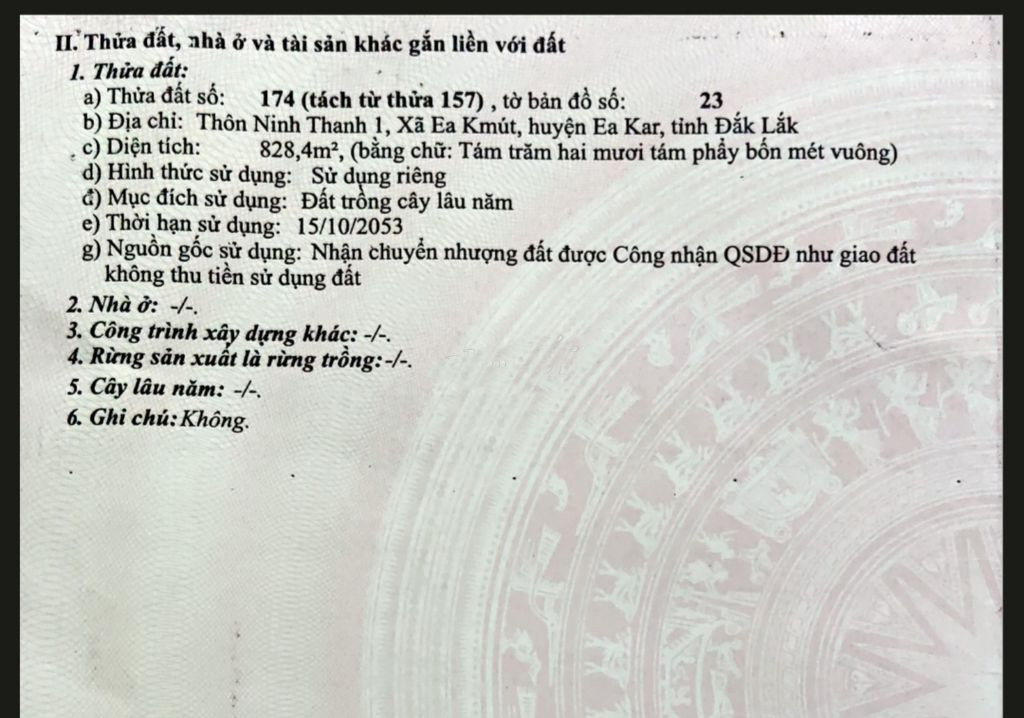 Thông tin khác: CẦN BÁN ĐẤT CHÍNH CHỦ GIÁ RẺ GẦN HỒ EA KAR_ĐĂK LĂK