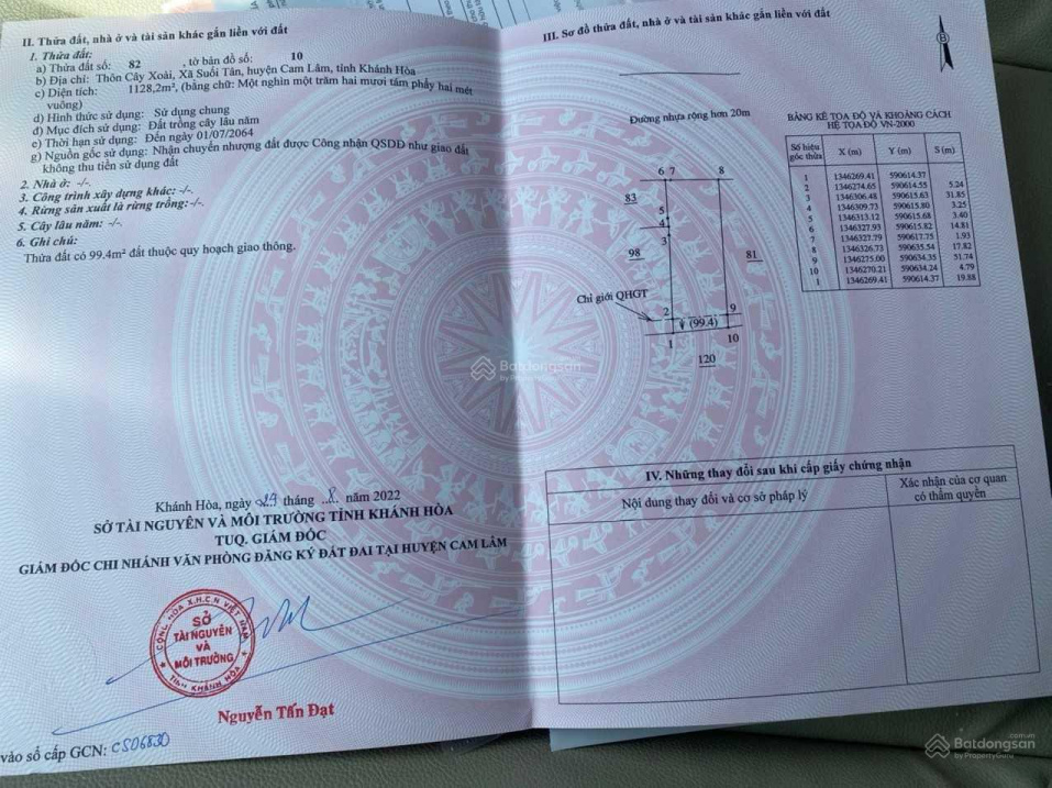 Thông tin khác: Cần bán đất mặt tiền Tỉnh lộ 3 diện tích 1128m2 Suối Tân, Cam Lâm