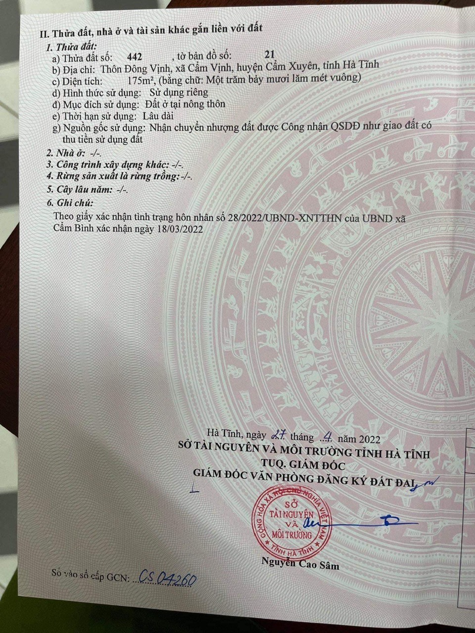 Thông tin khác: Cần Bán Gấp Lô Đất Đẹp Tại Thôn Đông Vịnh, Xã Cẩm Vịnh, Huyện Cẩm Xuyên, Tỉnh Hà Tĩnh.