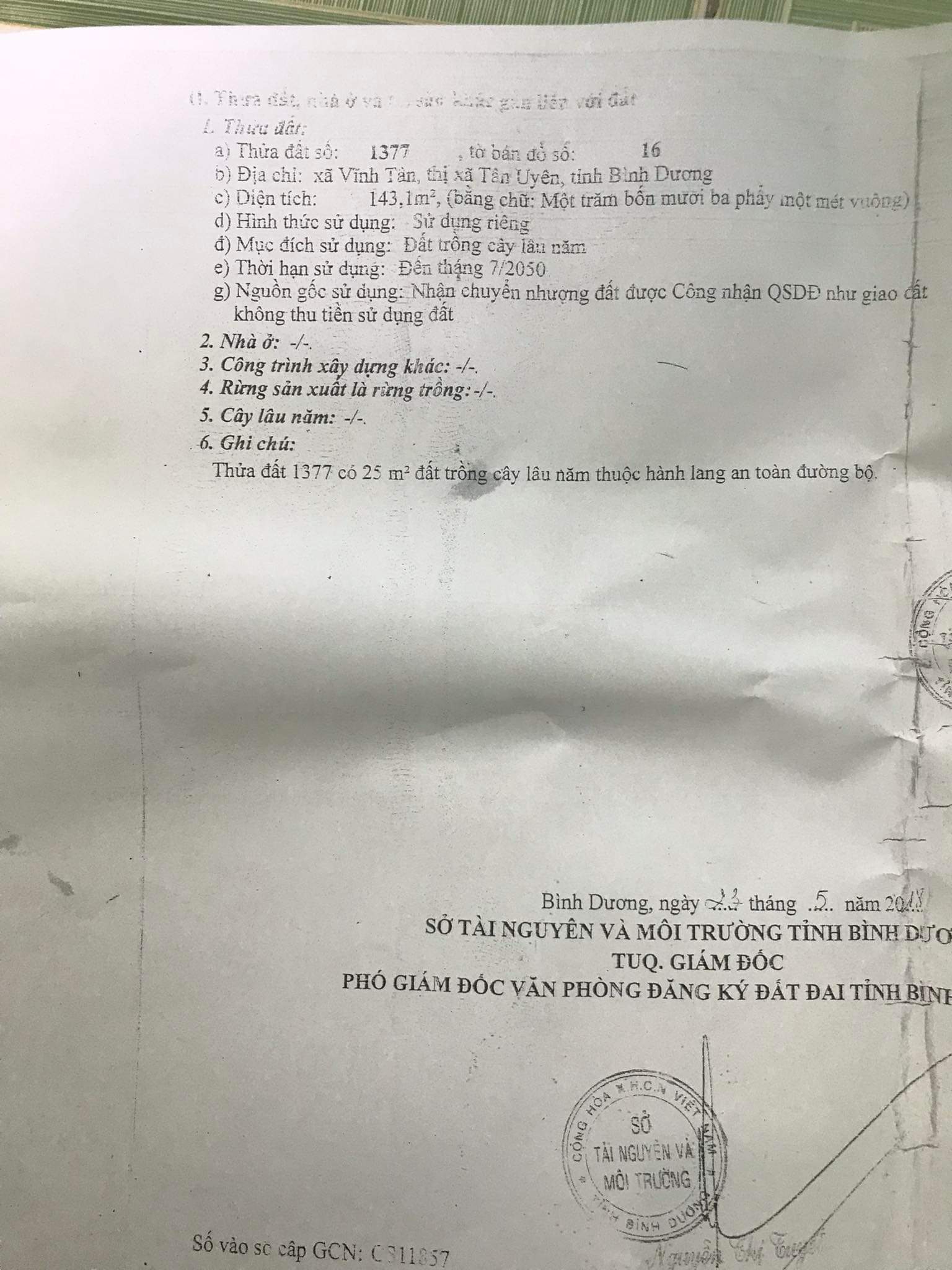 Thông tin khác: Cần Bán Gấp Lô Đất Full Thổ Cư Tại Vĩnh Tân