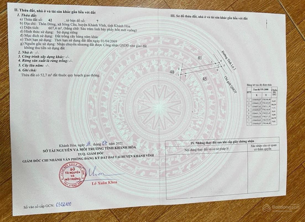 Thông tin khác: Cần bán lô đất mặt tiền TL2 - Sông Cầu - Khánh Vĩnh giá rẻ nhất thị trường