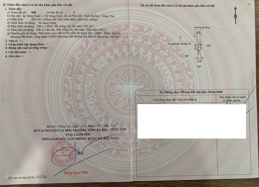 Cần bán lô đất xã Sông Xoài, thị xã Phú Mỹ, 5x40m, giá 1 tỷ. LH 0947 070 986 Vũ