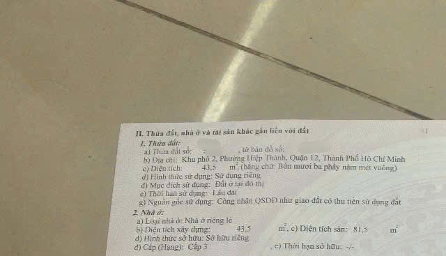 Thông tin khác: CẦN BÁN NHÀ 81.5M² SÀN - QUẬN 12 HXH HIỆP THÀNH 4.17 TỶ SỔ RIÊNG