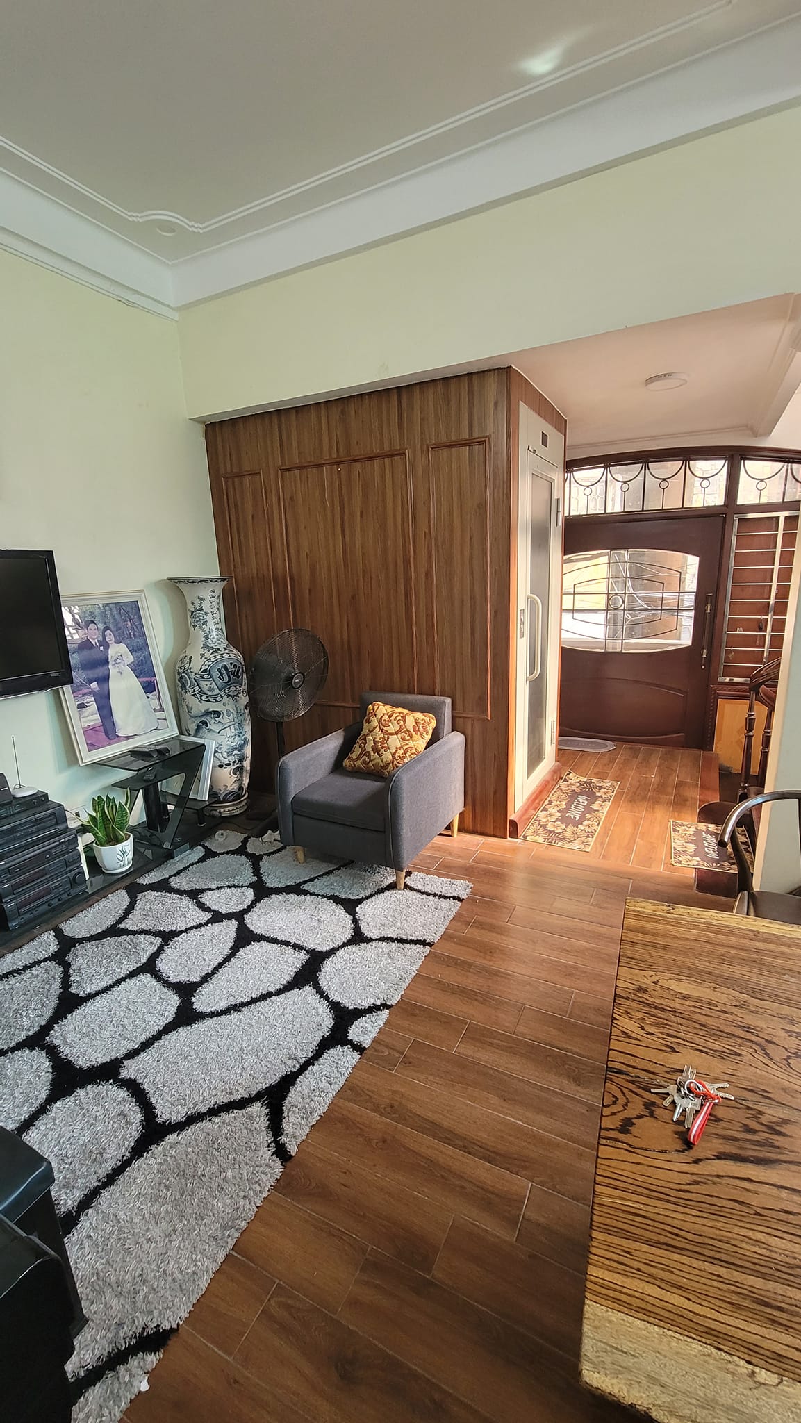 - Khi bước vào căn nhà, bạn sẽ được đón tiếp bởi một không gian sang trọng với phòng khách rộng rãi, phòng bếp tiện nghi và ban công thoáng đãng. Thiết kế đẹp với nội thất cao cấp, sàn gỗ, cầu thang và cửa gỗ lim, mang đến một không gian sống đẳng cấp và ấm cúng.