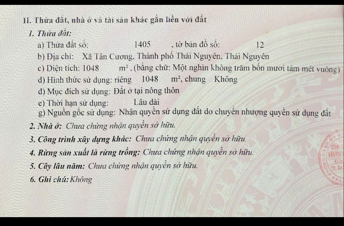 Thông tin khác: CẦN BÁN NHÀ VƯỜN (BIỆT THỰ) TẠI TÂN CƯƠNG – THÁI NGUYÊN