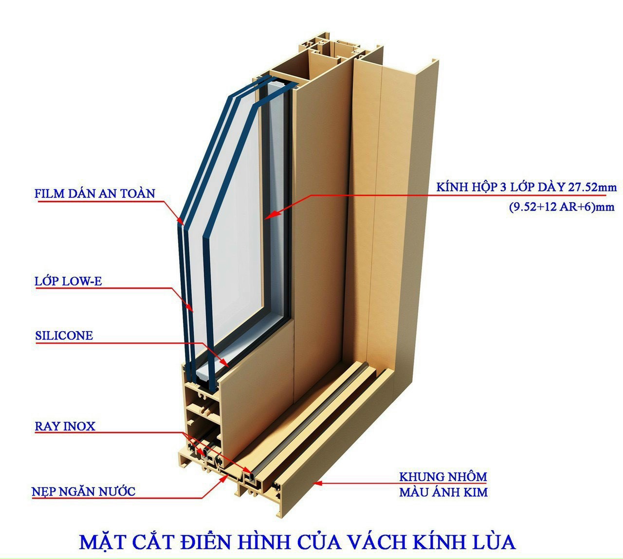– Căn hộ đầu tiên sử dụng kính hộp 2 lớp Low E dày 27.5mm, cản tia UV, bảo vệ sức khỏe.