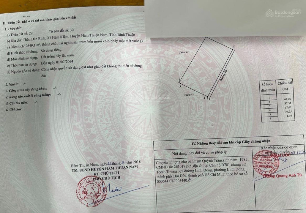 Thông tin khác: Chỉ với 1,2 tỷ sở hữu ngay 2.650m2 đất CLN Tại Hàm Thuận Nam Bình Thuận