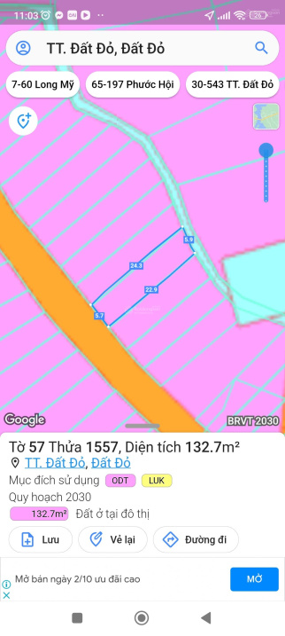 Thông tin khác: Chính chru bán lô 132m2 full thổ cư thị trấn Đất Đỏ ngay trung tâm hành chánh