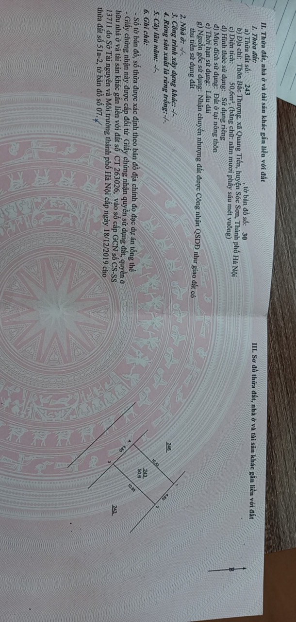 Thông tin khác: Chính chủ bán 50,6m2. Bắc Thượng - Quang Tiến - Sóc Sơn - HN. Đường 5m thông view sông