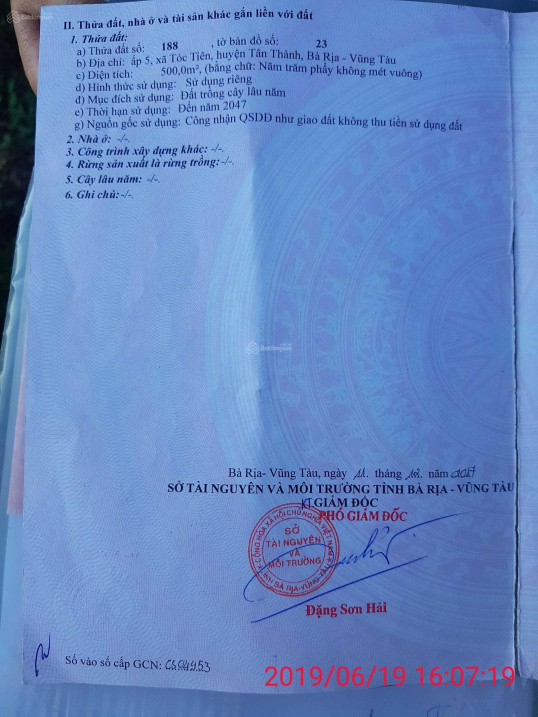 Thông tin khác: Chính chủ bán đất 10x50m xã Tóc Tiên, đối diện Hắc Dịch, mặt tiền Lê Đức Thọ