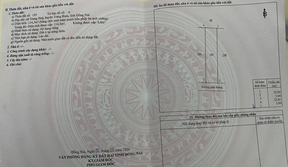 Thông tin khác: Chính chủ bán đất diện tích 115m2 giá 1,15 tỷ, xã trung hòa, Huyện Trảng bom, Đồng Nai