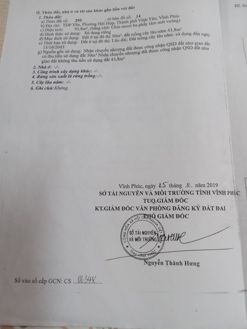 Thông tin khác: Chính chủ bán đất vị trí đẹp tại Phố Yên, Phường Hội Hợp, TP Vĩnh Yên, Vĩnh Phúc.