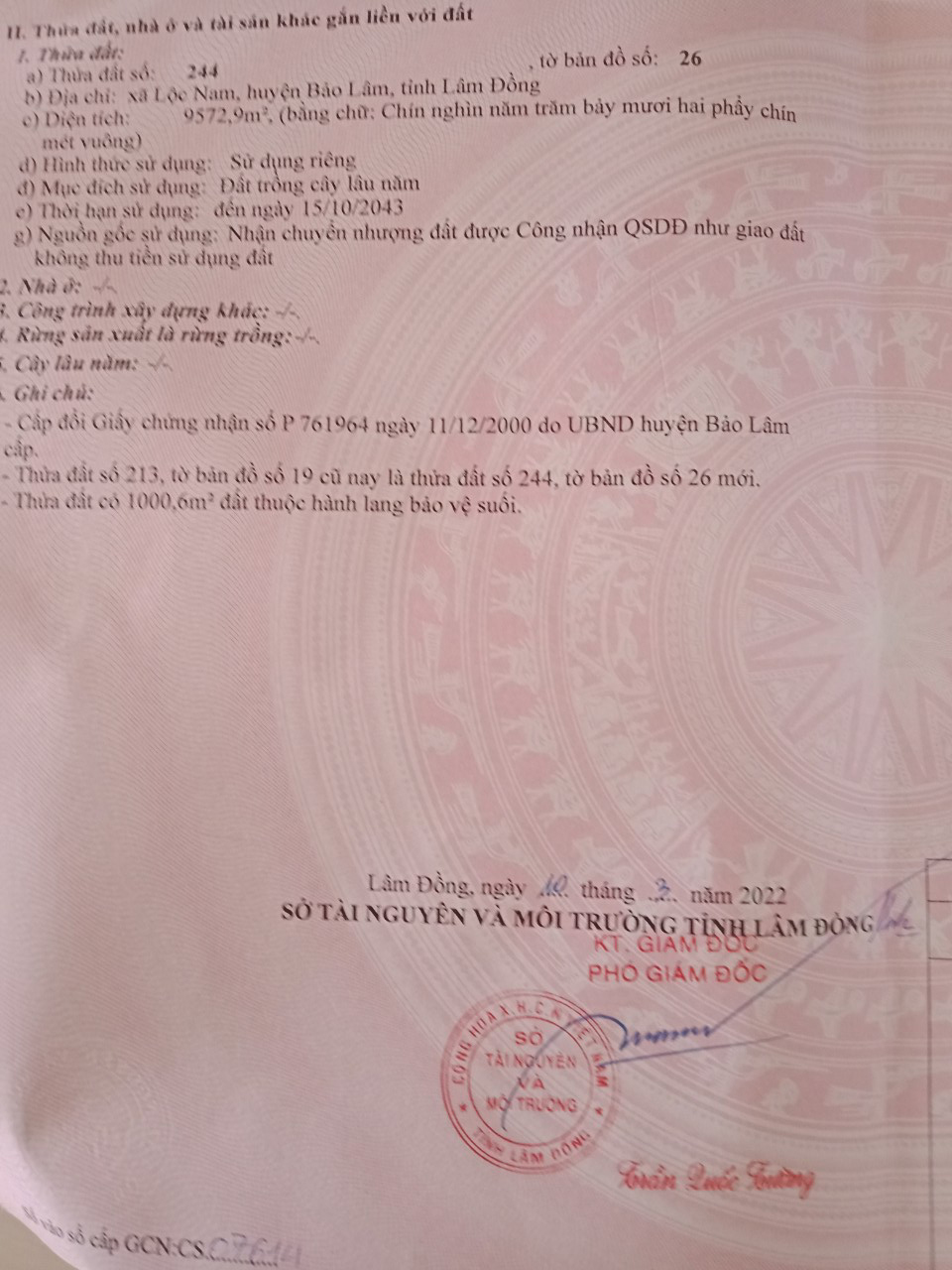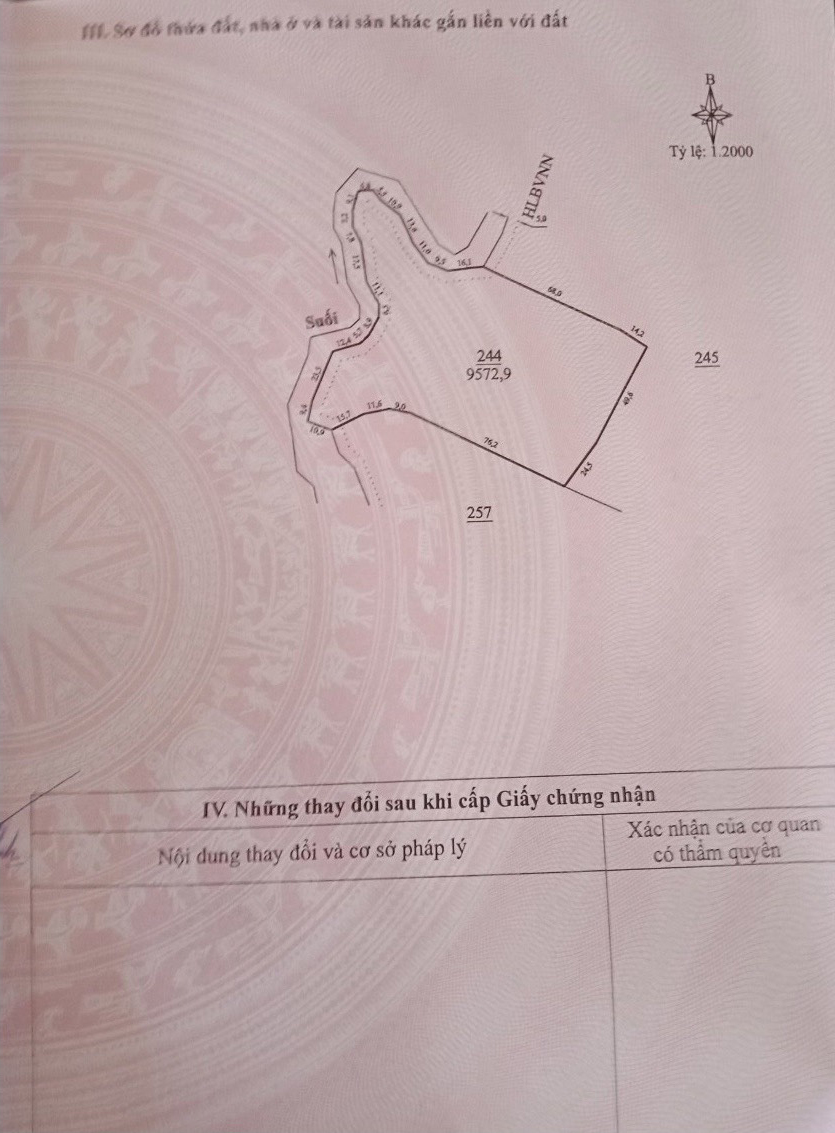 Gia đình cần bán lô đất 9573m². Đường bê tông rộng 3m, ô tô đi cầu kiên cố qua suối vào đất. Từ đường trục chính đi vào đất tầm 50m.