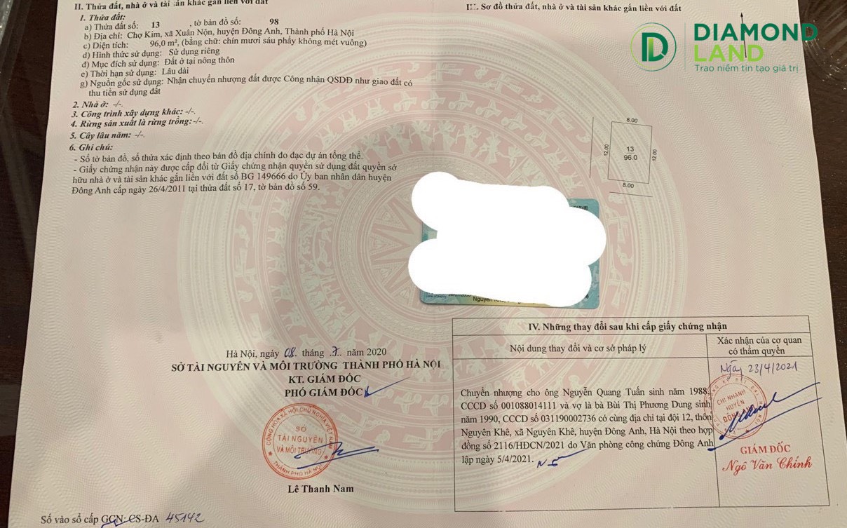 Thông tin khác: Chính chủ bán lô góc 96m2. Chợ Kim - Xuân Nộn - Đông Anh - HN. Sát chợ , trường học...