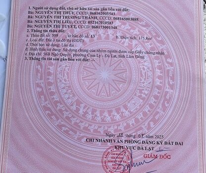 Thông tin khác: Chính chủ bán nhà mặt tiền đường – 150 Ngô Quyền, phường Cam Ly, Đà Lạt, Lâm Đồng