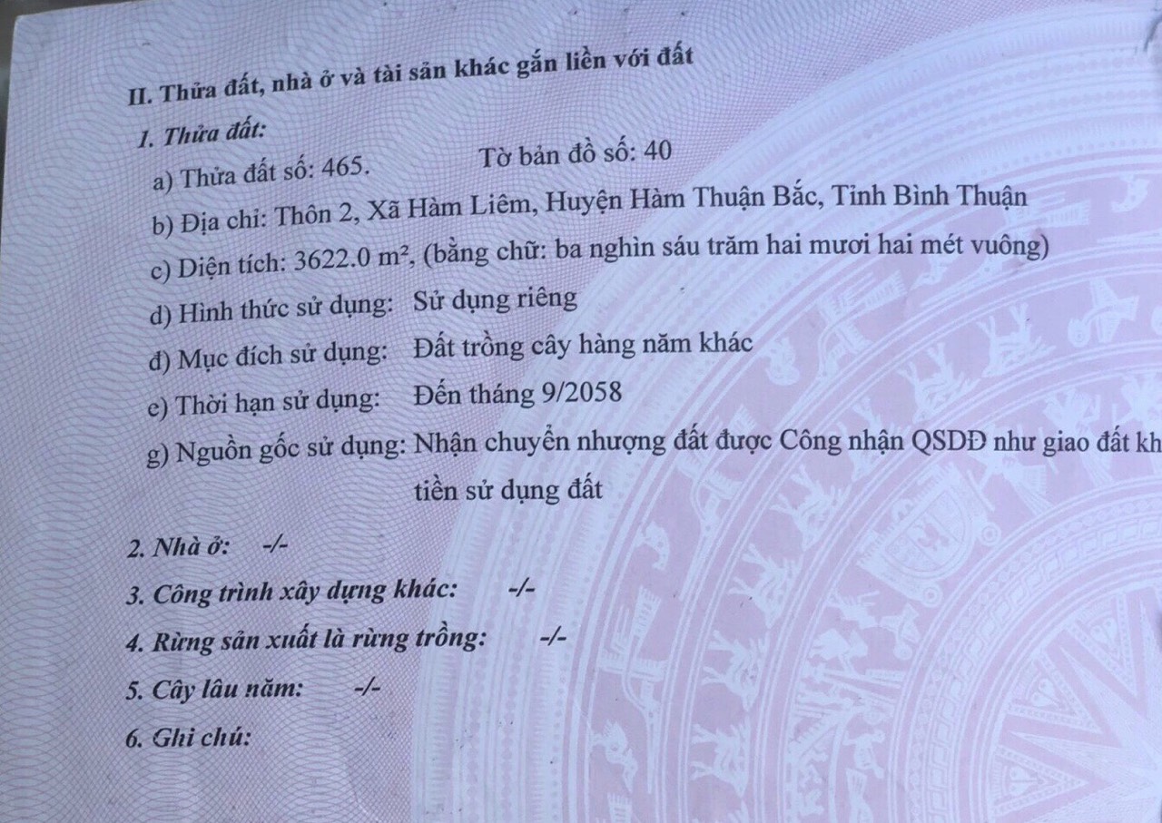 Thông tin khác: Chính chủ cần bán đất huyện Hàm Thuận Bắc, tỉnh Bình Thuận