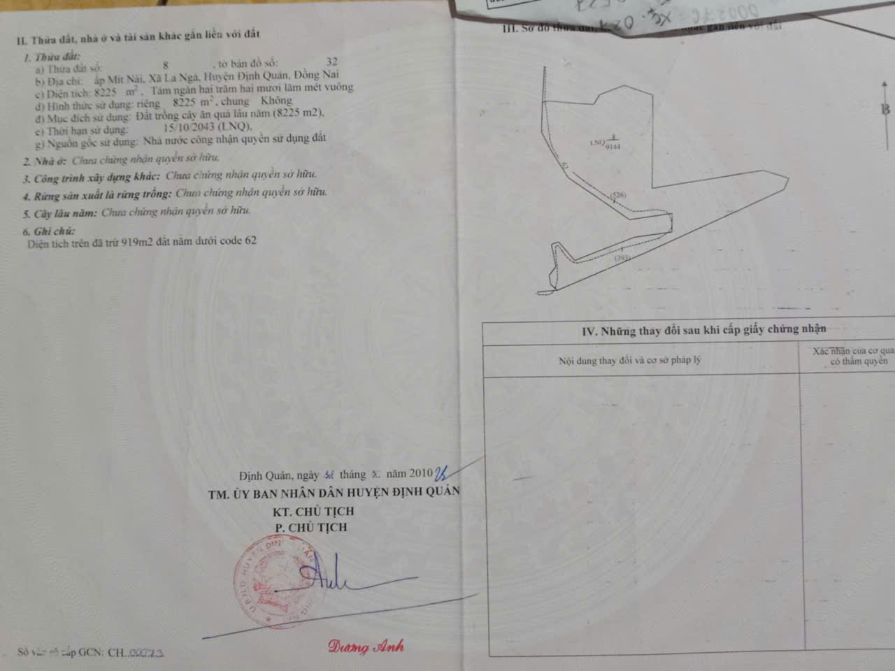 Địa chỉ tài sản: Ấp Mít Nài, Xã La Ngà, Huyện Định Quán Đồng Nai