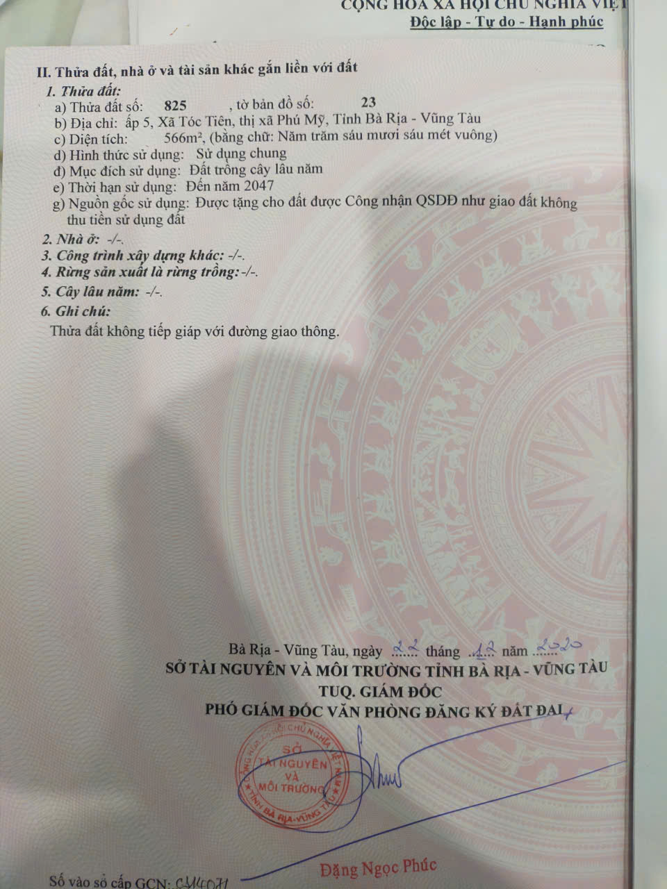Thông tin khác: %%CHÍNH CHỦ CẦN BÁN LÔ ĐẤT DSH Ở ẤP 5 TÓC TIÊN - HẮC DỊCH - PHÚ MỸ - BÀ RỊA VŨNG TÀU.