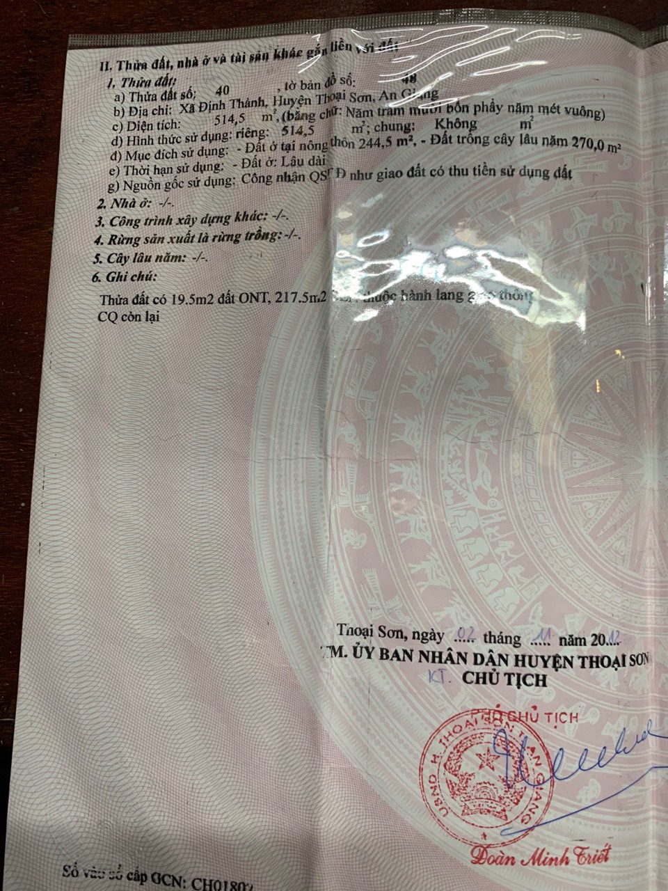 Thông tin khác: Chính chủ cần bán lô đất ở Xã Định Thành, Huyện Thoại Sơn, Tỉnh Anh Giang