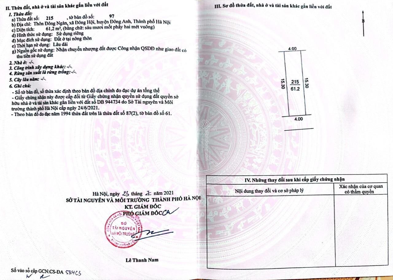 Thông tin khác: Chính chủ cán bán lô đất ở xóm Đình, thôn Đông Ngàn Xã Đông Hội - Đông Anh - Hà Nội