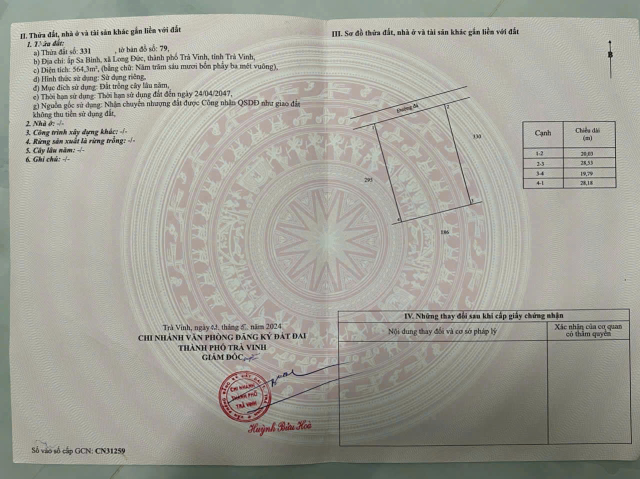CHÍNH CHỦ CẦN BÁN LÔ ĐẤT TẠI PHƯỜNG LONG ĐỨC – TP. TRÀ VINH – TỈNH TRÀ VINH.